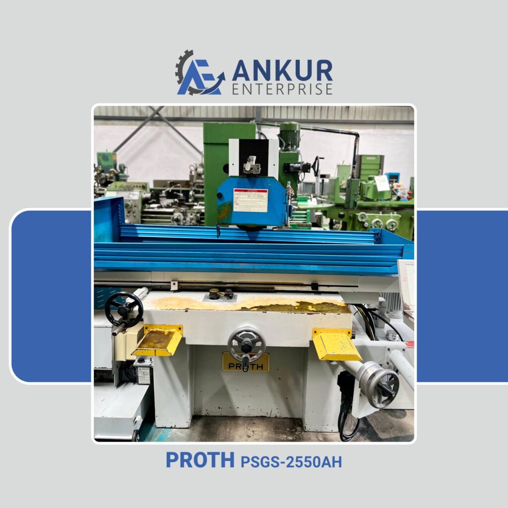 We offer used imported surface grinders in excellent working condition, available for sale at competitive prices. A surface grinding machine is a precision machining tool designed to remove material from a workpiece’s surface using a grinding wheel as the cutting tool. Moreover, to achieve precise finishing with high accuracy, abrasives are carefully applied to the grinding wheel’s surface and edges during the abrasive machining process.
